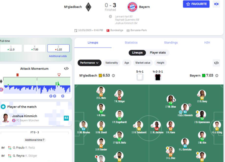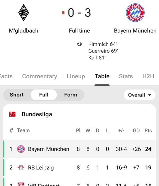 直至下半场第64分钟,基米希的打破僵局和5分钟之后格雷罗接到了奥丽塞的助攻破门,拜仁才在客场建立了相对稳妥的优势。而到了下半场第81分钟,替补出场的卡尔用一脚精彩的世界波破门,帮助拜仁在17分钟之内将比分扩大至了3-0。